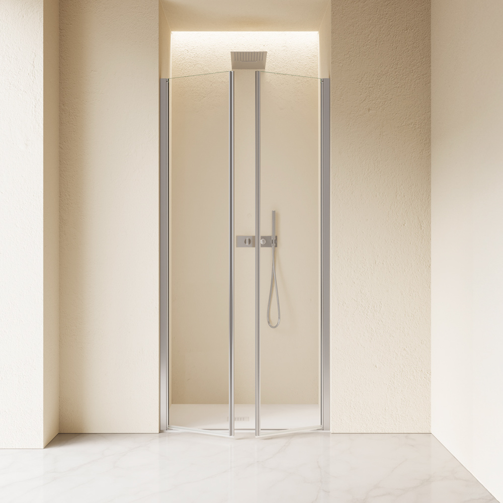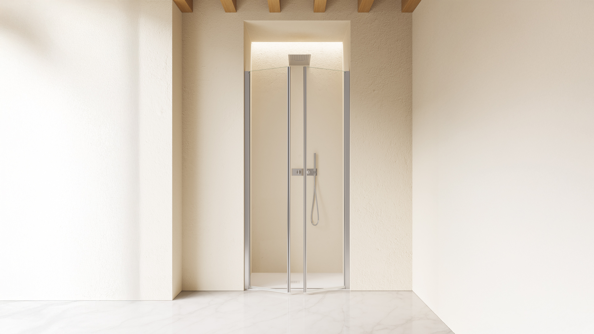 Due ante con apertura a saloon. L'apertura delle ante è sia verso l'interno che verso l'esterno. Maniglia installata a tutta altezza sul bordo della porta.