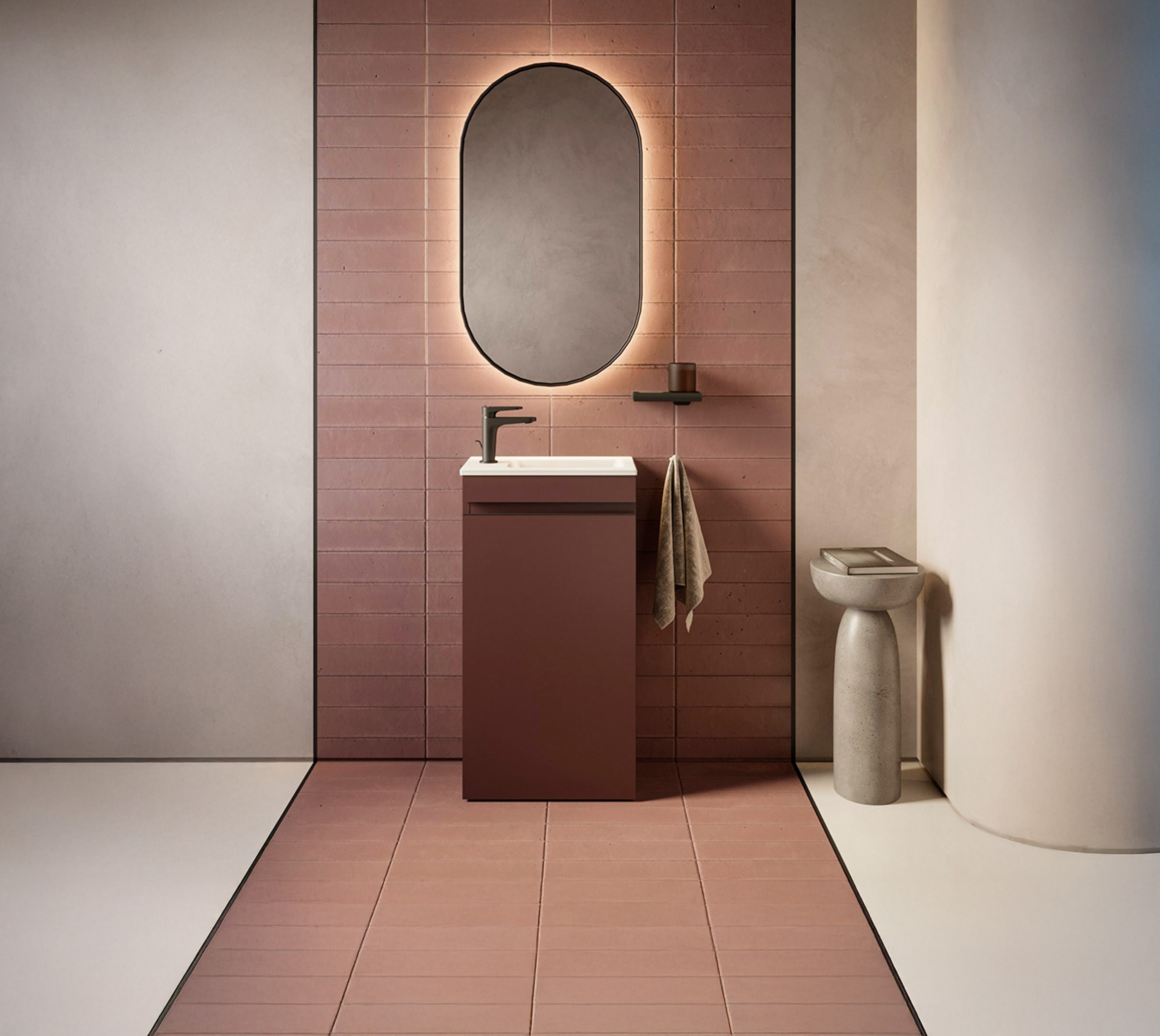 Semplicità ed eleganza sono i tratti distintivi di Metropole. La presa gola dona linearità ai frontali creando così soluzioni adatte ad ogni ambiente bagno. Disponibile nella vasta gamma cromatica di Soluzioni e nelle versioni laminate.