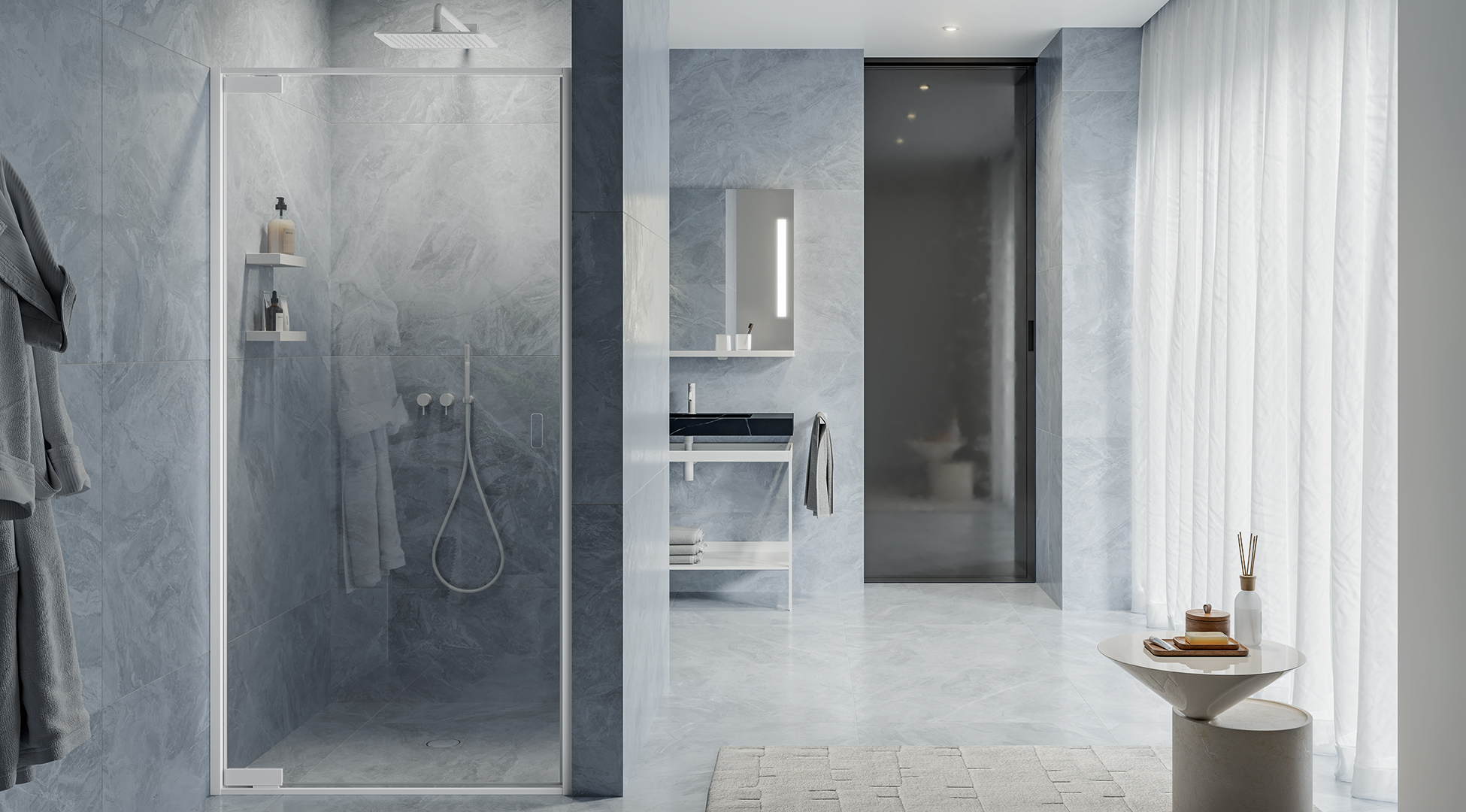 Chiusura magnetica a scomparsa a triplo magnete bilaterale. Apertura totale delle ante sia verso l’interno che verso l’esterno. Guarnizione inferiore. Foro maniglia. Installazione in nicchia.